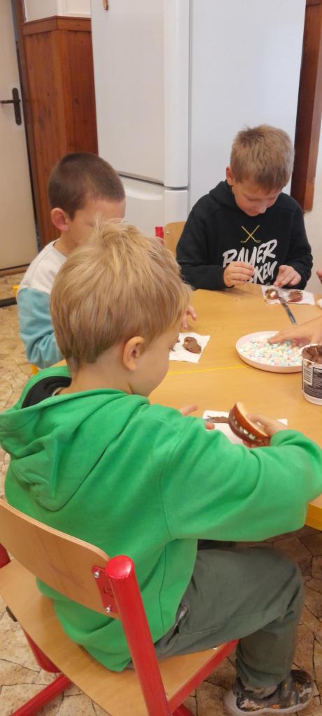 Kromě pobytu na sportovišti a zahradě, jsme vyrazili i na vycházky, kde jsme pozorovali proměny přírody – sledovali jsme, jak se mění stromy, pole i zahrady kolem nás. Kromě pobytu venku jsme se nenudili ani v oddělení ŠD, hráli jsme společenské hry, tvořili, malovali, pekli, smažili a vyráběli výrobky s podzimní tématikou.