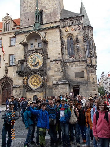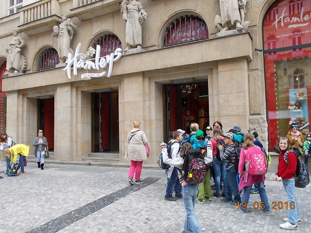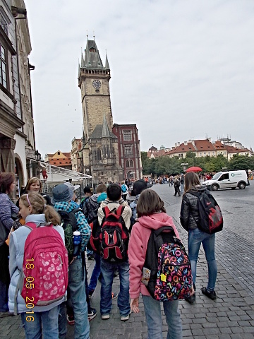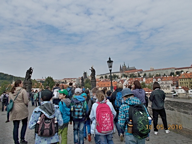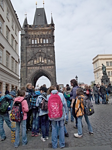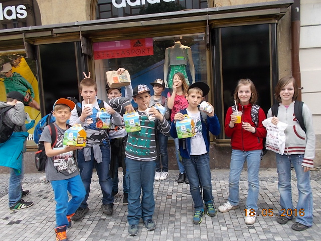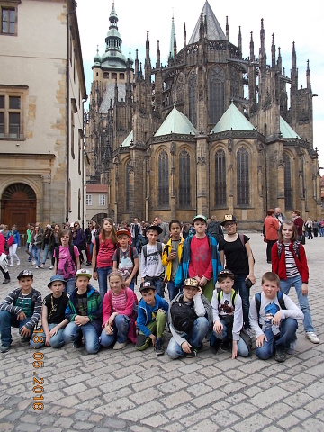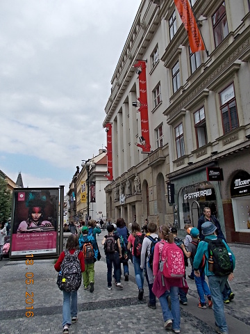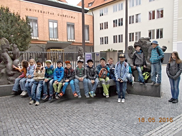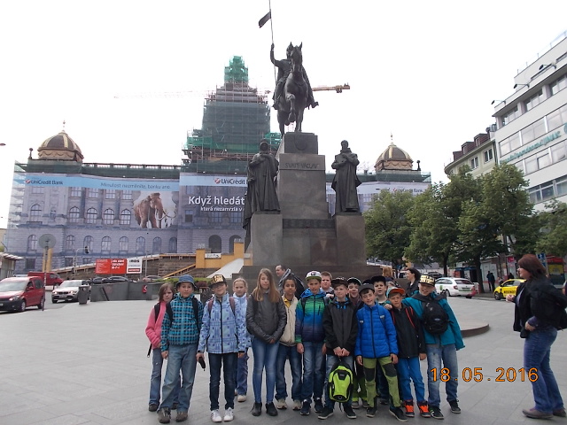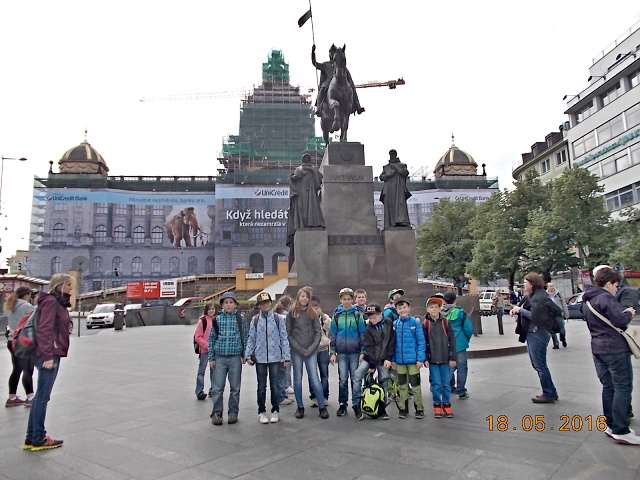 Ve středu 18. 5. se vydali žáci 4. a 5. třídy přesvědčit, proč se našemu hlavnímu městu – Praze – říká „stověžatá“. Přestože bylo nutné vyrazit brzy ráno, všichni jsme se na cestu vlakem moc těšili. Ta ubíhala velmi rychle a my jsme se chystali na celodenní putování po Praze. Z Hlavního nádraží jsme došli až na Václavské náměstí, k soše sv. Václava, odkud jsme měli výhled jak na celé náměstí, tak i na Národní muzeum, které se ale bohužel nyní rekonstruuje. Poté jsme metrem celé toto náměstí sjeli až na jeho spodní část a vydali se k Prašné bráně …