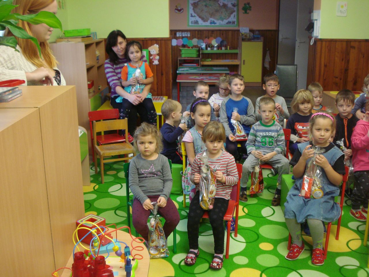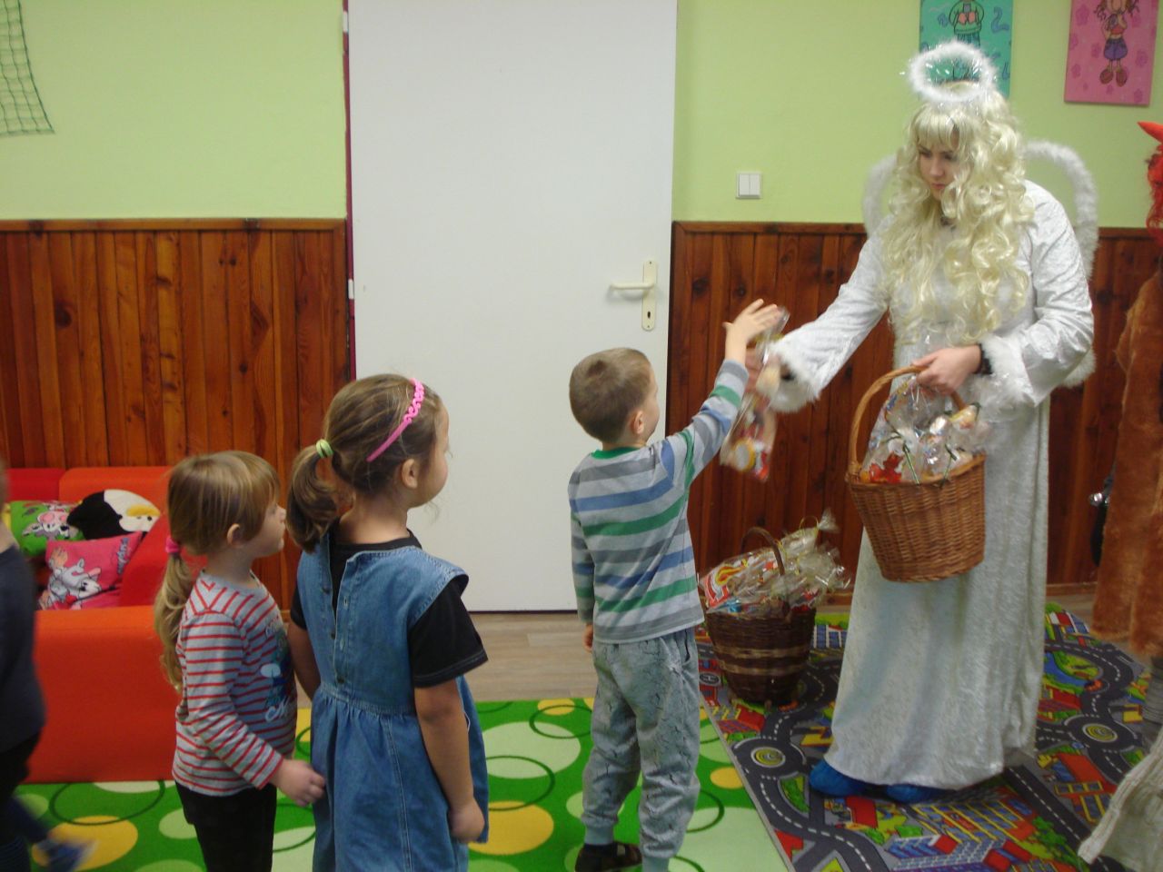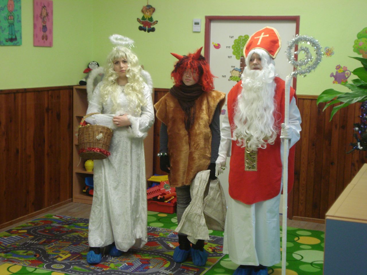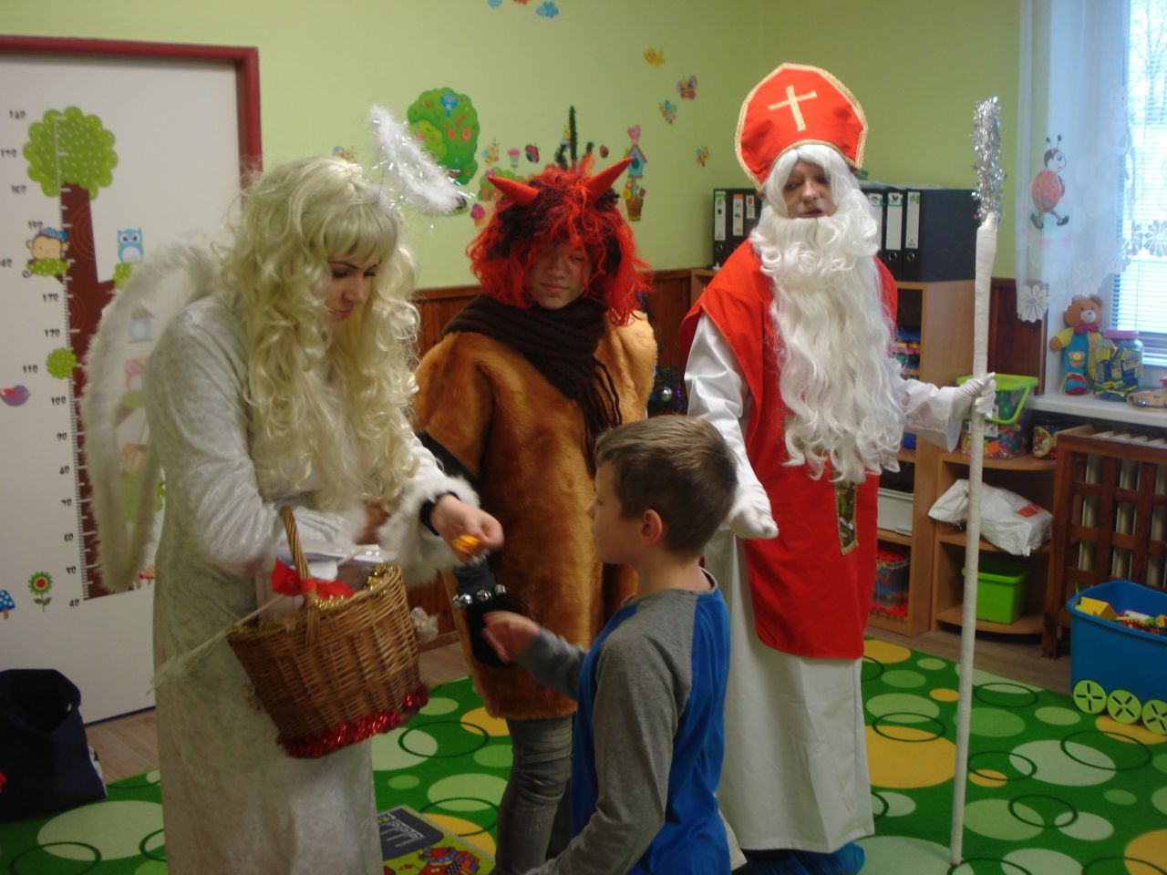 V úterý 5.12. zavítal do naší MŠ Mikuláš s čertem a andělem. Bát se nikdo nemusel, ve školce máme děti hodné a nějaké malé zlobení nevadí. Děti naší milé návštěvě zazpívaly a přednesly básničku. Mikuláš s andělem rozdali dětem dárečky a čertík? Ten jen tiše stál.